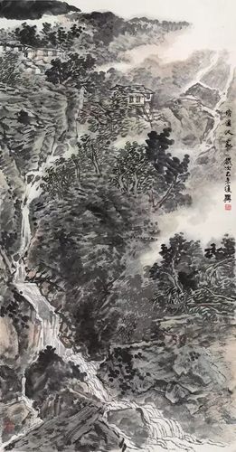 张复兴在广西多年,见多了广西的奇山异水,但从他笔下流出的画面,却没有什么夺人眼球的“奇怪”之景。这或许正是他聪明过人之处:一方面他深谙中G山水画理论精髓,明白景观丘壑的描绘,是属于“技”与“术”层面,而“意境”与“笔墨”这些文化属性,则上升为“道”的精神层面。所以张复兴的山水画动人之处,其一是寻求朴实平谈之美,在看似寻常的处处家山中,在南国青烟陇翠的茂林修竹里,达到素朴自然却醇厚丰满意蕴盎然的境界。其二是张复兴特有的笔墨图像构成,开创了山水画具有个性化的新貌。上世纪80-90年代山水画迅速恢复发展时期,影响于南北画坛的是以李可染、陆俨少二位泰斗,此外则是各种“特技”试验以及大量的追随模仿者,在西化“创新”和“折中”的样式试验中茫然的探索着。而张复兴这位远在广西的画家,却以自己特有的才华将多年的勤奋和生活积累,演绎出令人眼球为之一亮的既平谈朴实又华美的笔墨图像。他的许多作品常常冠以“家山”二字,道出了他的精神追求:平凡中的田园美感,温馨中的情感归属。张复兴没有追随当时流行的各种“制作”技法,也没有简单追摹大师前辈们的样式来换得界内的认可。