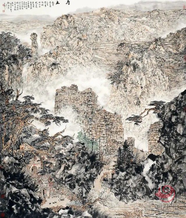 计建清的山水画作品,风格独特,意境深远。他的画作既有北方山水的逶迤险峻,又蕴含江南人文的灵秀豁达。他善于将南北山水的特点巧妙融合,创作出既有神韵、又有趣味、更有意境的佳作。在他的笔下,太行山等名山大川被赋予了新的生命和活力,展现出一种雄浑壮美、苍茫旷远的艺术魅力。
