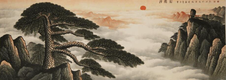 在泼彩绘画领域,张惠文传承了张大千作品的雄浑劲键之风,用墨挥洒自如,淋漓尽致。他巧妙地将古法与今意相融合,创造出独特的“烟云合一、墨彩合一”泼墨渲染技法,被誉为“山水交融画法第一人”,名扬海内外。
