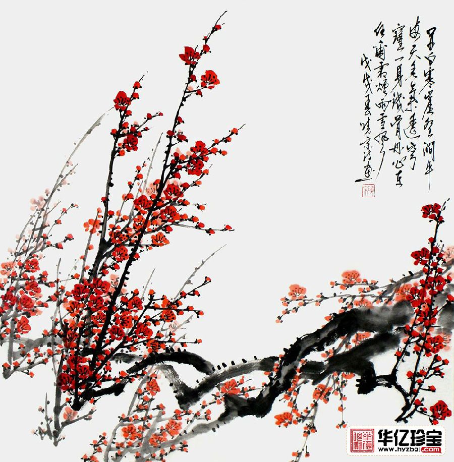 诗人画家 郑晓京斗方精品梅花力作《红梅图》