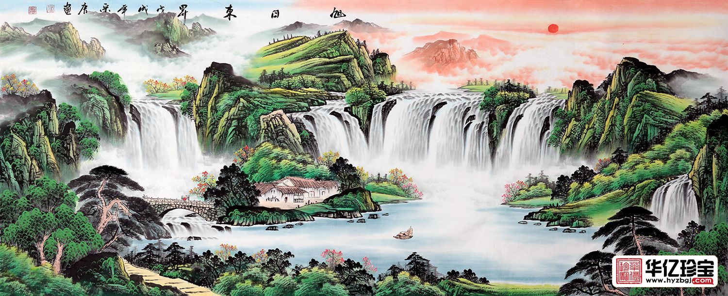 八方聚财聚宝盆 宋唐创作风水画新品《旭日东升》青绿聚宝盆 招财进宝