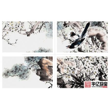 丁珂四尺横幅喜鹊、梅花、松树作品《清雅为伴》喜上眉梢 双喜临门