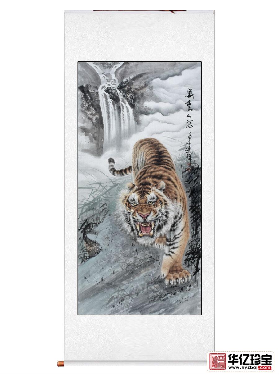 下山虎镇宅 “中G虎王新秀”王建辉六尺竖幅工笔动物画老虎《威震山河》威震山河