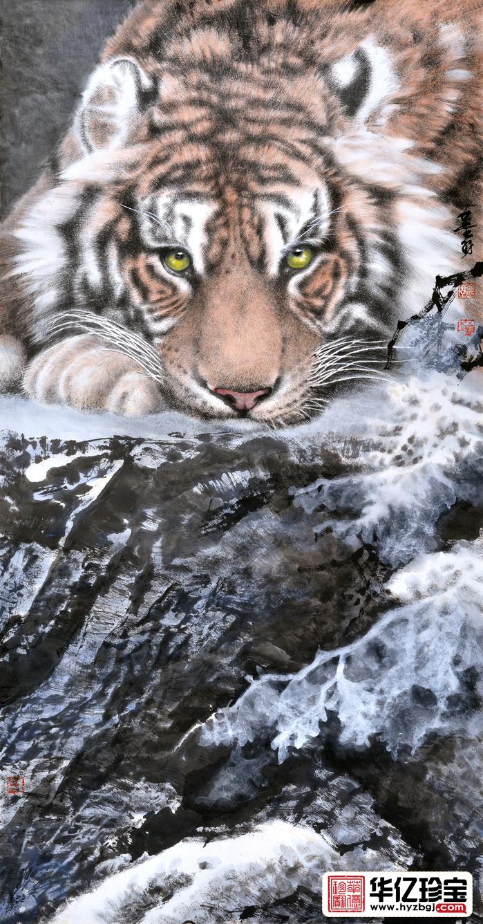 镇宅祈福 吉林美协曲展四尺竖幅国画虎《威震山河》吉林美术家协会会员