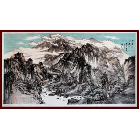 贺兰山画派创始人 山水画家何占福《贺兰山韭菜沟》16平尺巨幅作品『作品规格』180x98