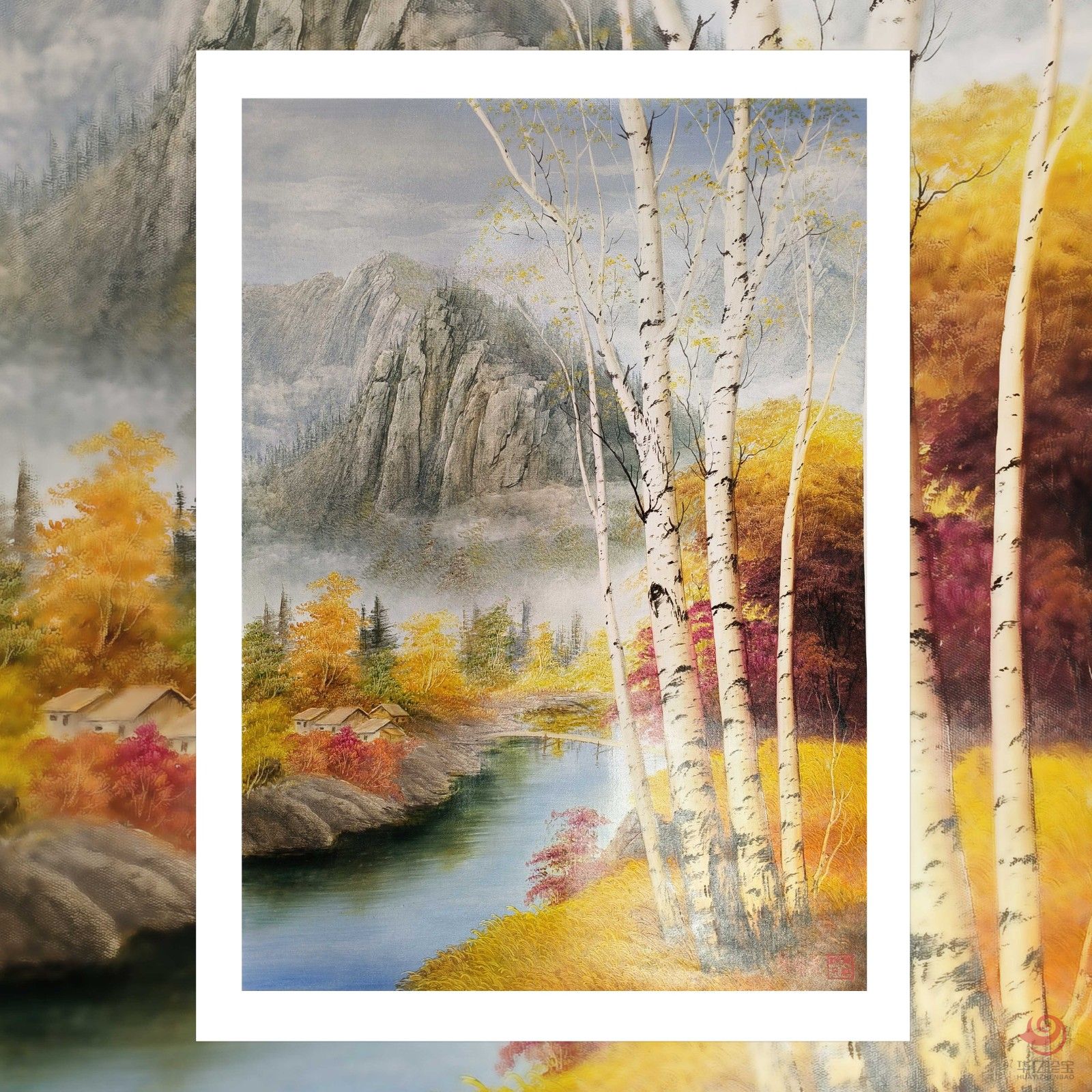 【藏品名称】刀画协会主席张维源4.86平尺金色白桦林油画(刀画)作品