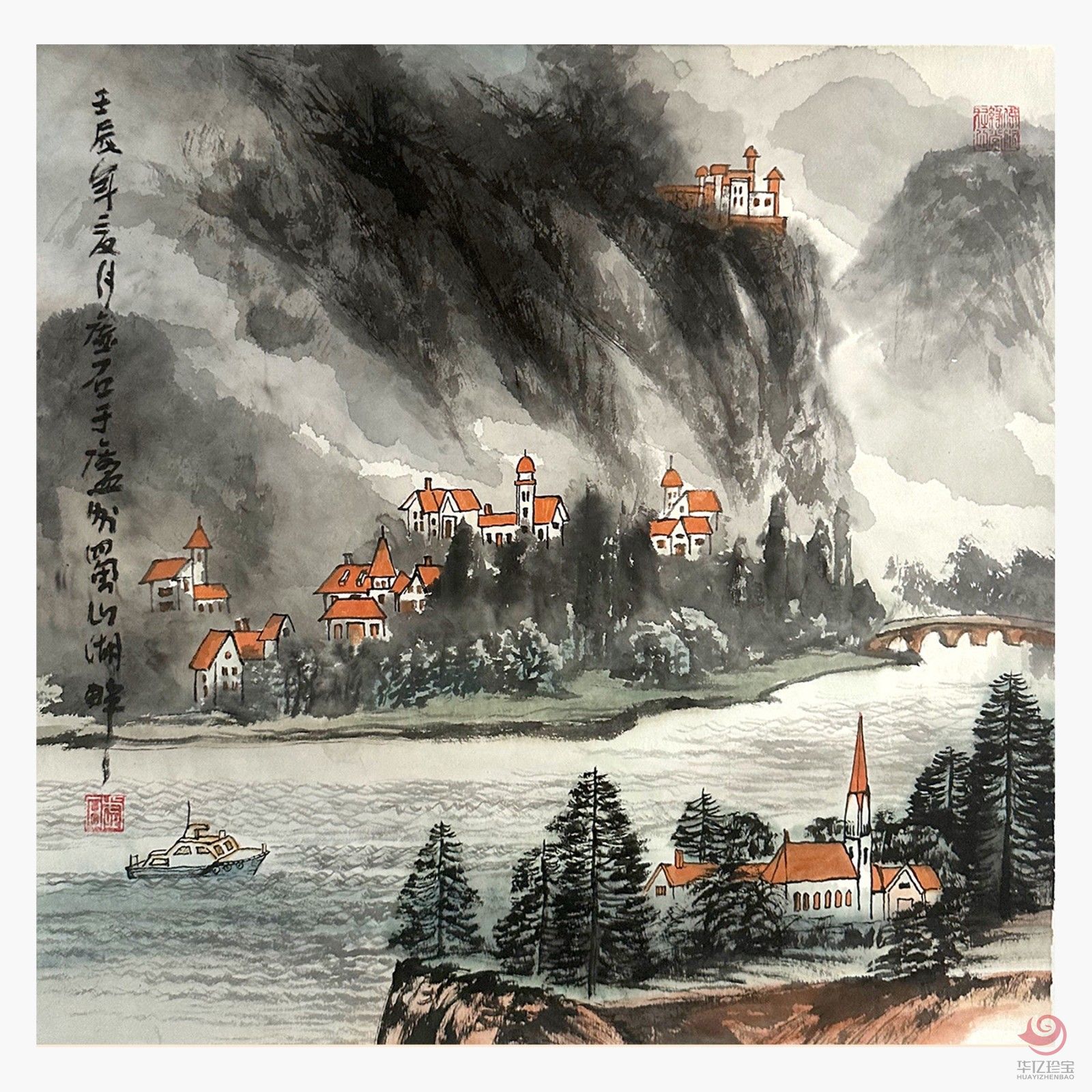 陆鹤龄4平尺山水作品《蜀山湖畔》