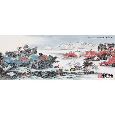 陆鹤龄8平尺山水作品《峡江行舟》136*68cm