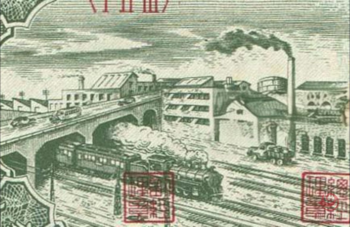 【图案及颜色】正面左侧有工厂、大桥和火车图案主绿色 背面花球主墨绿色