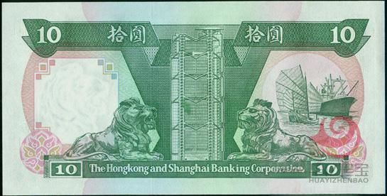 阅兵钞正面:以汇丰狮子“施迪”作主体,背景为亚太区汇丰总行大厦;