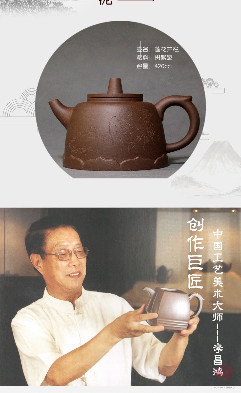 商品名称:中国工艺美术大师李昌鸿 莲花井栏紫砂壶 拼紫泥420cc