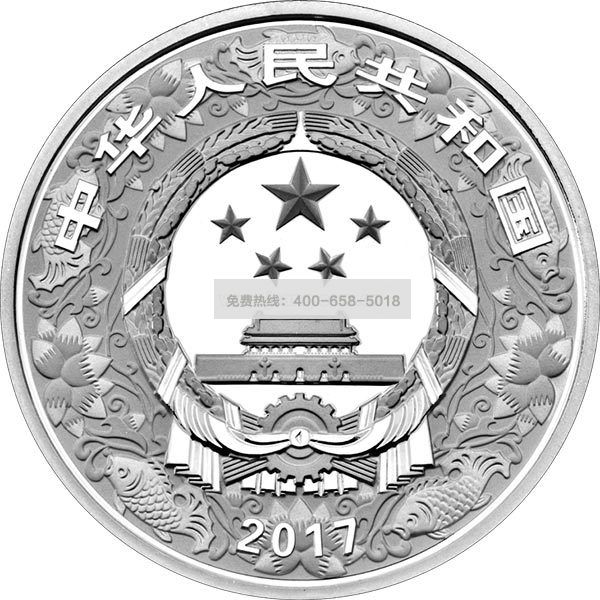 3克圆形金质纪念币、10克扇形金质纪念币、15克梅花形金质纪念币、150克长方形金质纪念币、500克圆形金质纪念币、1公斤梅花形金质纪念币、2公斤圆形金质纪念币、10公斤圆形金质纪念币、30克圆形银质纪念币、30克梅花形银质纪念币、30克扇形银质纪念币、150长方形银质纪念币、1公斤圆形银质纪念币等13枚金银纪念币背面图案均为雄鸡造型,衬以装饰雄鸡纹样,并刊面额及“丁酉”字样。